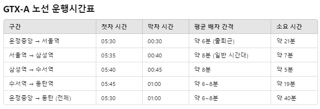 | GTX-A 운정중앙 → 서울역 방면 시간표 및 정보 (하행선) (1) | 2025.01.13 |