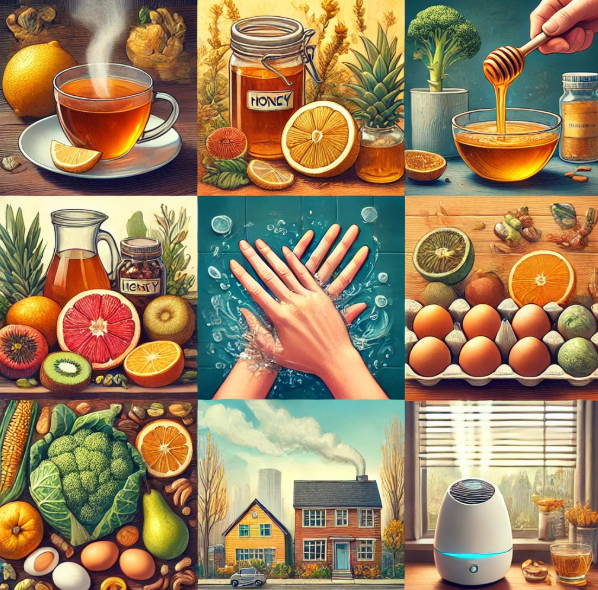 - 하루 2리터 이상의 물을 마시는 것을 추천하며, 따뜻한 차나 꿀물을 마셔 몸을 따뜻하게 유지하는 것도 좋습니다.