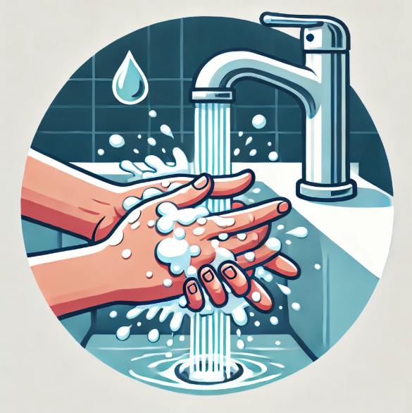 - 외출 후, 식사 전후, 기침이나 재채기 후에는 비누와 따뜻한 물로 20초 이상 꼼꼼히 손을 씻으세요.