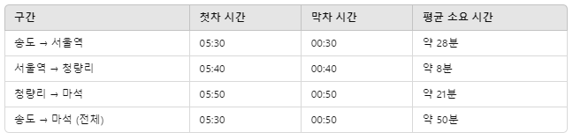 - 송도 → 서울역: 약 28분