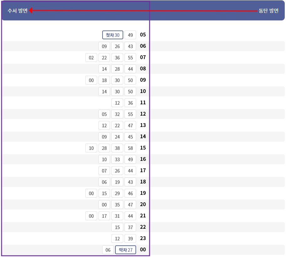• 첫차는 오전 05:30, 막차는 자정 50분에 운행됩니다.