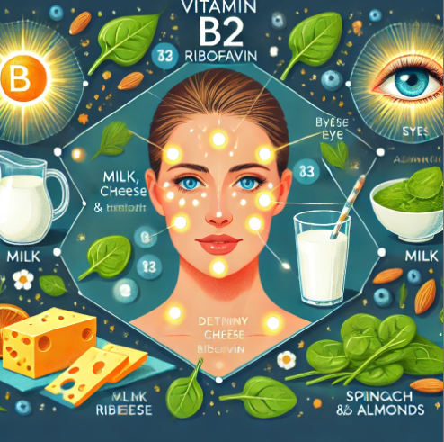 비타민 B2(리보플라빈)는 피부와 눈 건강을 유지하는 데 필수적인 영양소입니다.