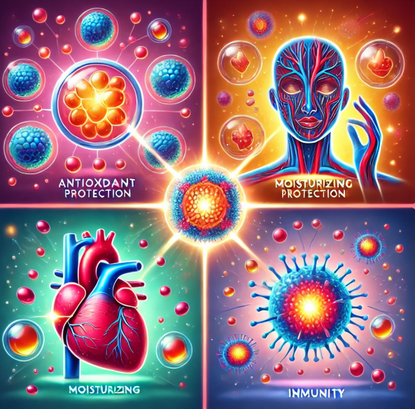 비타민 E는 피부 보습과 회복을 도와줍니다. 자외선으로 인한 피부 손상을 줄이고, 주름 개선과 상처 치유에도 효과적입니다.